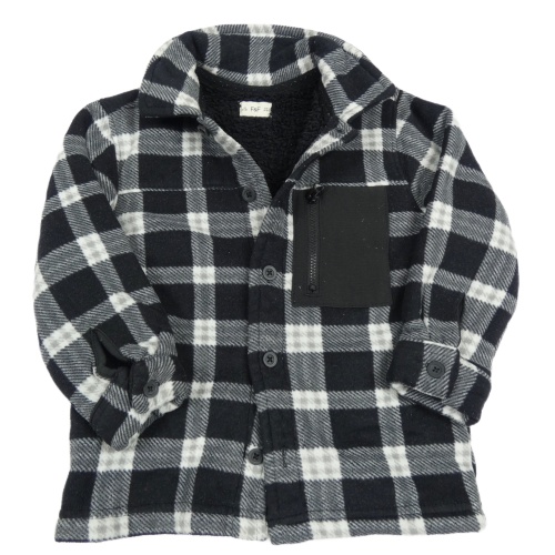 Černo-bílá kostkovaná fleecová košilová zateplená bunda F&F