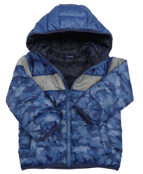 Modro-šedá šusťáková prošívaná lehká zateplená bunda s dinosaury a kapucí Impidimpi