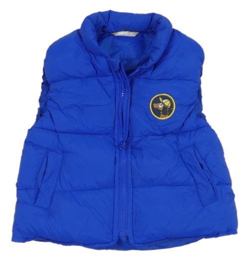 Modrá šusťáková zateplená vesta s nášivkou
