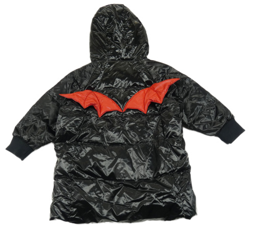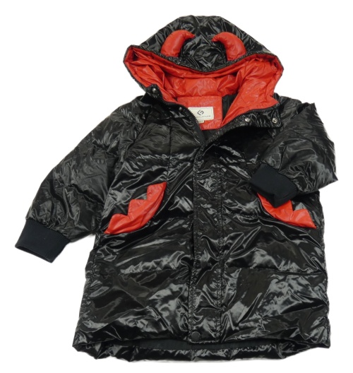 Černo-červený nepromokavý zimní kabát s kapucí s rohy