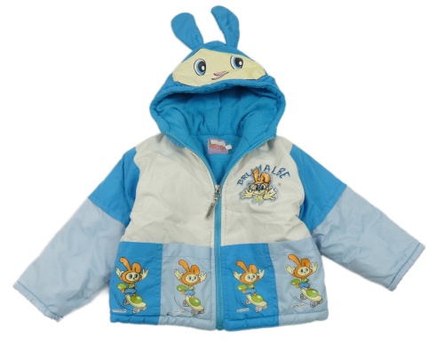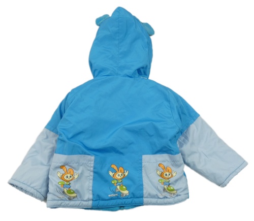 Modro-světlemodro-bílá šusťáková zimní bunda se zajíčky a kapucí
