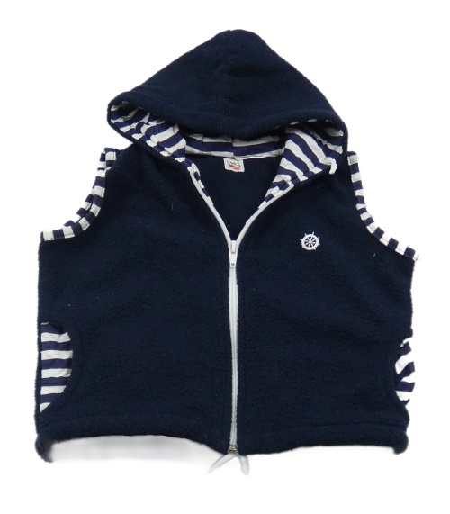 Tmavomodrá fleecová vesta s výšivkou a kapucí