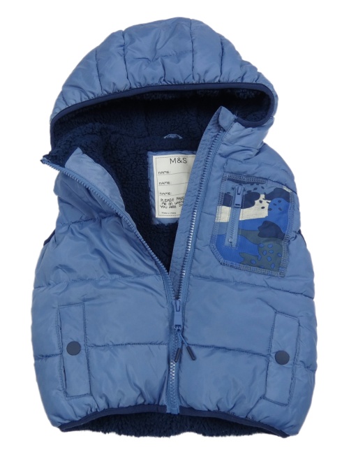 Modrá prošívaná šusťáková zateplená vesta s kapucí M&S