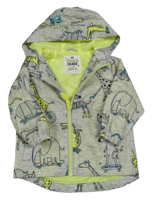 Světlešedá melírovaná šusťáková jarní bunda se zvířátky a kapucí F&F