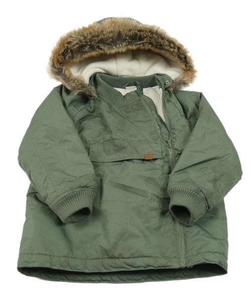 Khaki šusťáková zateplená bunda s kapucí s kožešinou H&M