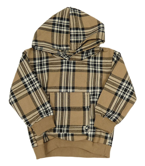 Hnědo-černo-bílá kostkovaná bunda s kapsou a kapucí SHEIN