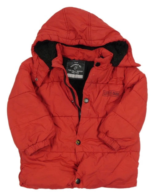 Červená prošívaná šusťáková zimní bunda s nápisem a kapucí George