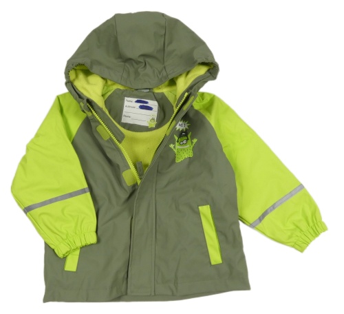 Khaki-limetková nepromokavá lehce zateplená bunda s příšerkou a kapucí Kiki&Koko