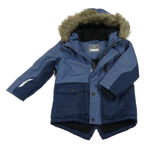 Tmavomodrá šusťáková zateplená bunda s kapucí s kožešinou Primark