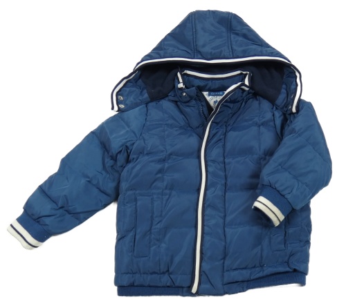 Tmavomodrá šusťáková zimní bunda s kapucí