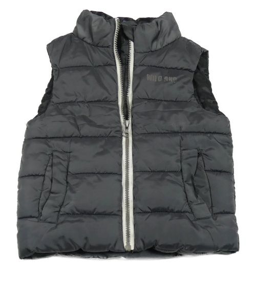 Tmavošedá prošívaná šusťáková zateplená vesta s nápisem dopodopo