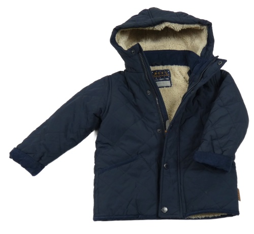 Tmavomodrá šusťáková prošívaná zimní bunda s kapucí Next