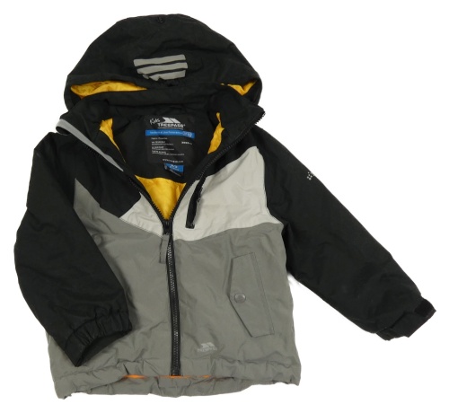 Tmavošedo-světlešedo-černá šusťáková funkční zimní bunda s odepínací kapucí TRESPASS