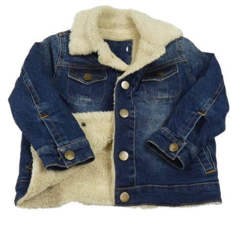 Tmavomodrá riflová zateplená bunda s huňatým límečkem