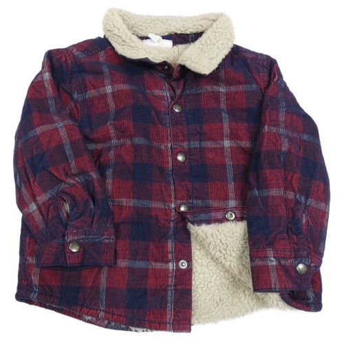 Tmavomodro-červená kostkovaná manšestrová zateplená košilová bunda The Little White Company