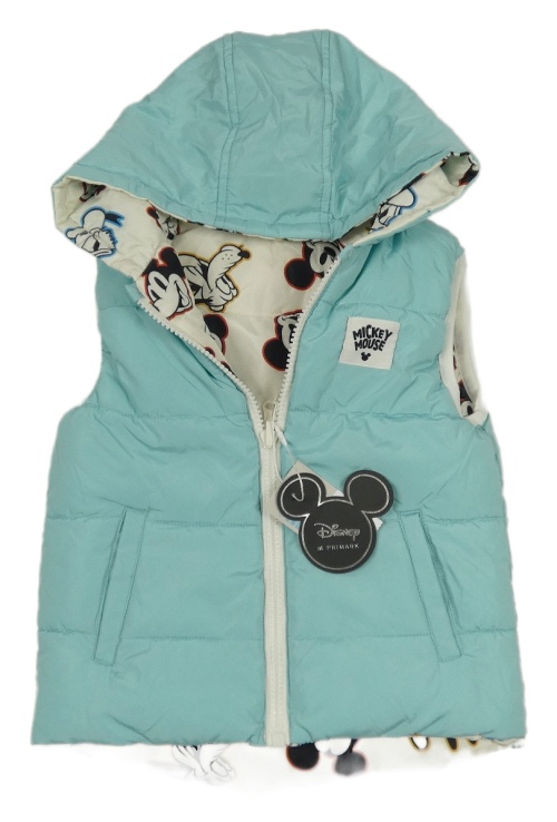 Nové - Světlemodrá šusťáková oboustranná zateplená vesta s kapucí Primark