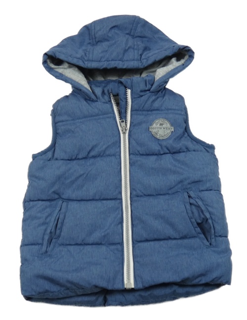 Modro/tmavomodrá melírovaná prošívaná šusťáková zateplená vesta s nášivkou a kapucí Rebel