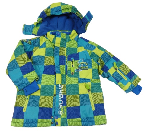 Limetkovo-modrozeleno-modrá kostkovaná šusťáková lyžařská bunda s kapucí Orchestra