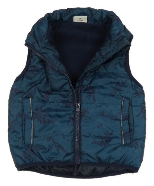 Tmavopetrolejová prošívaná šusťáková zateplená vesta s kostrami dinosaurů Kuniboo