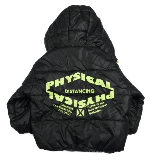Černá šusťáková prošívaná zimní bunda s nápisem a kapucí Shein