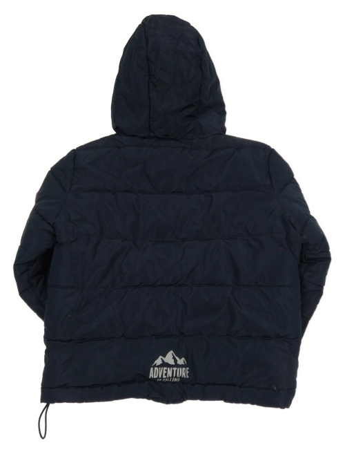 Tmavomodrá prošívaná šusťáková zimní bunda s nášivkou a kapucí INFINITY KIDS