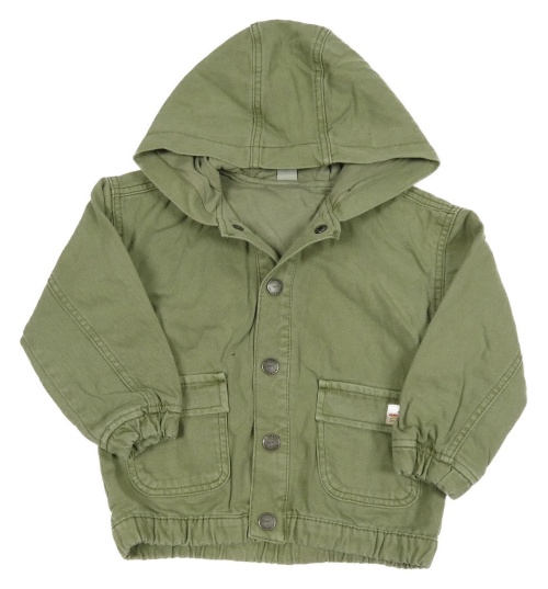 Khaki riflová podšitá bunda s nášivkou a kapucí Tu