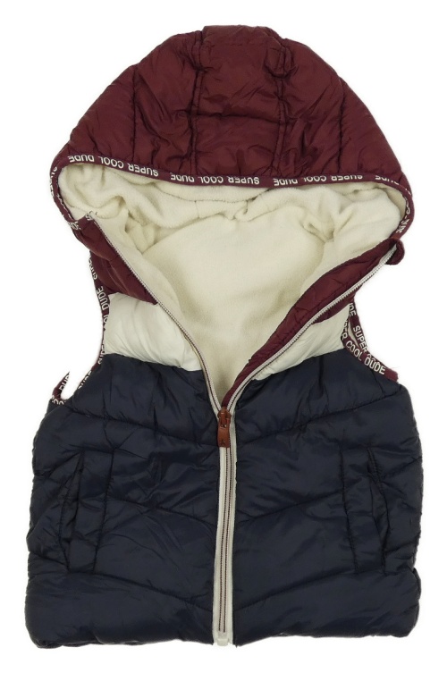Tmavomodro-vínovová šusťáková prošívaná zateplená vesta s kapuíc Dunnes