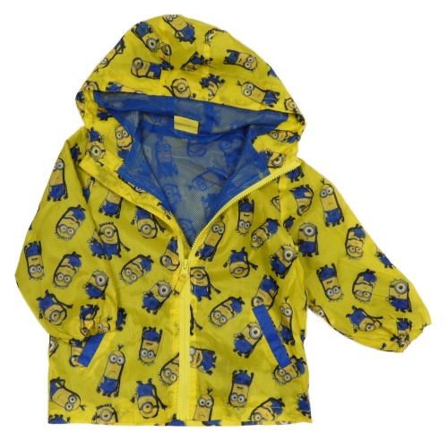 Tmavožlutá šusťáková jarní bunda s Mimoni a kapucí