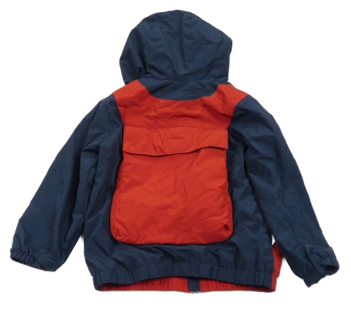 Tmavomodro-červeno-bílá šusťáková jarní bunda s dinosaurem a kapucí fagottino
