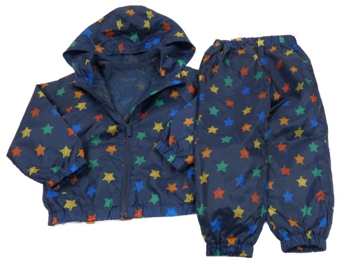 2Set - Tmavomodrá šusťáková jarní bunda s barevnými hvězdičkami a kapucí + kalhoty Tu