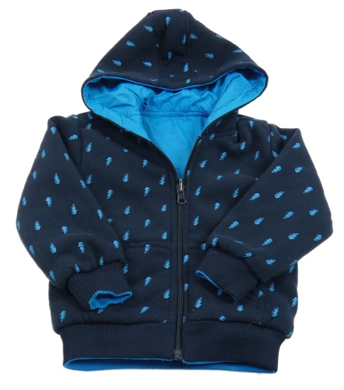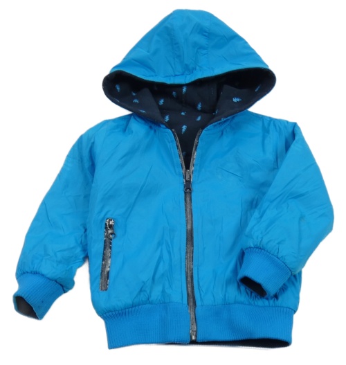Tyrkysová/tmavomodrá šusťáková oboustraná jarní bunda s kapucí