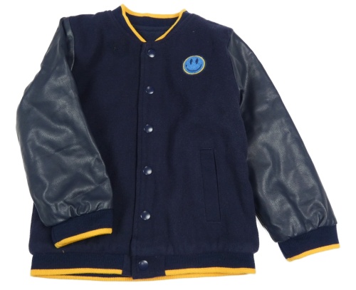 Tmavomodrá fleecovo/koženková zateplená bunda se smajlíkem Nutmeg