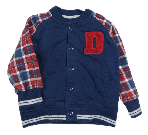 Tmavomodro-kostkovaná zateplená baseballová bunda s písmenkem M&S