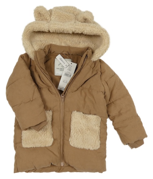 Nové - Hnědá šusťákovo/huňatá zateplená jarní bunda s kapucí s oušky George