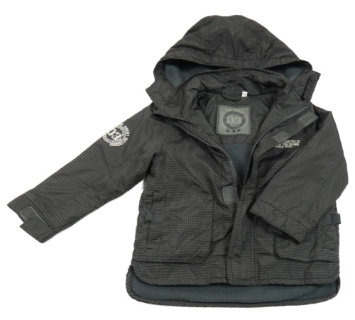 Černo-šedá kostkovaná šusťáková zateplená bunda s nápisem a kapucí C&A
