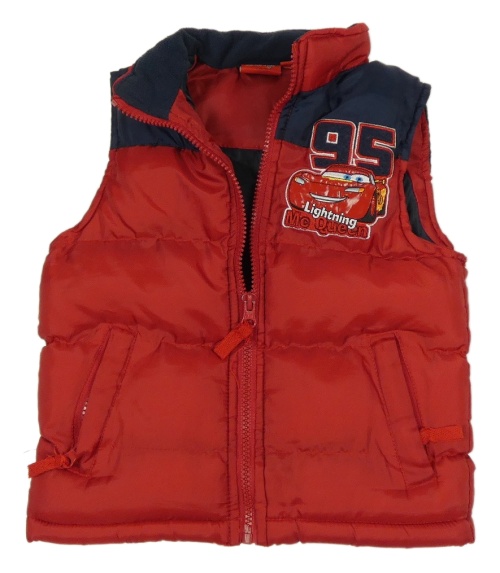 Červeno-tmavomodrá šusťáková zateplená vesta - Auta
