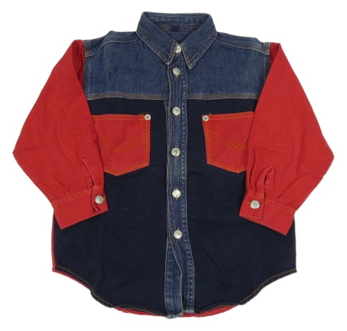 Tmavomodro-červená riflová bunda