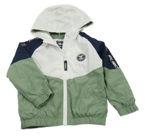 Bílo-zeleno-tmavomodrá šusťáková jarní bunda s kapucí C&A