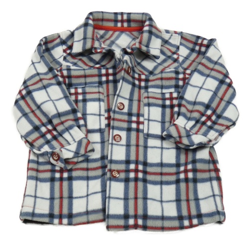Bílo-šedo-modro-červená kostkovaná fleecová košilová bunda