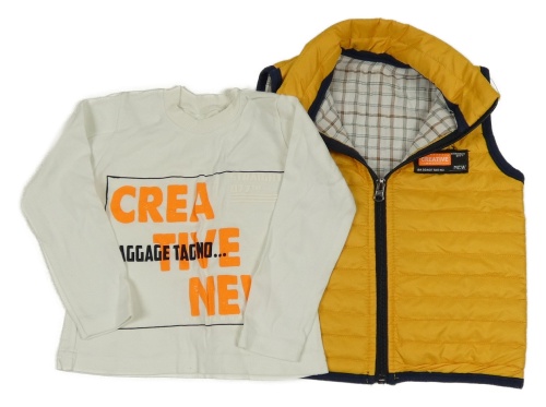 2 set - oková šusťáková prošívaná lehce zateplená vesta + bílé triko s nápisem