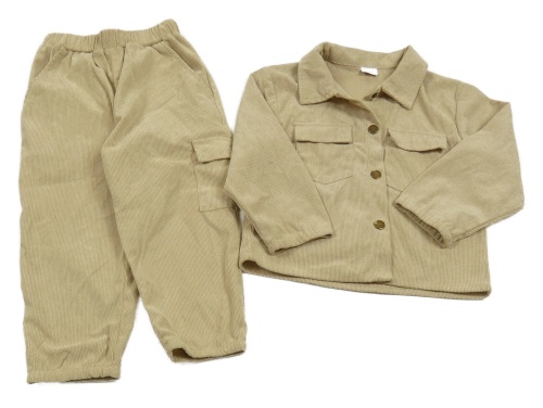 2set - Béžová žebrovaná košilová bunda + kalhoty s kapsou