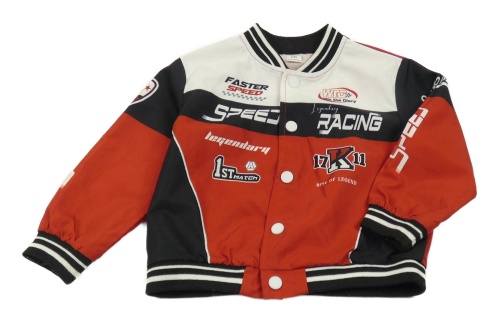 Bílo-černo-červená šusťáková jarní bunda s nápisem shein