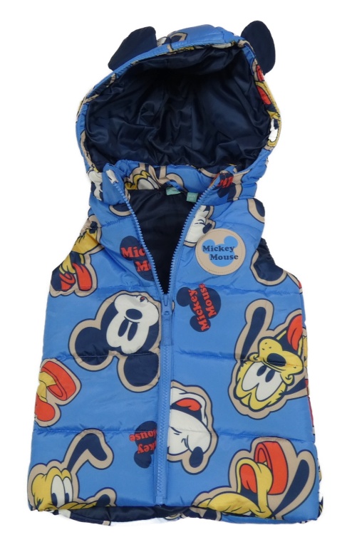Modrá šusťáková prošívaná zateplená vesta s Mickeym Disney