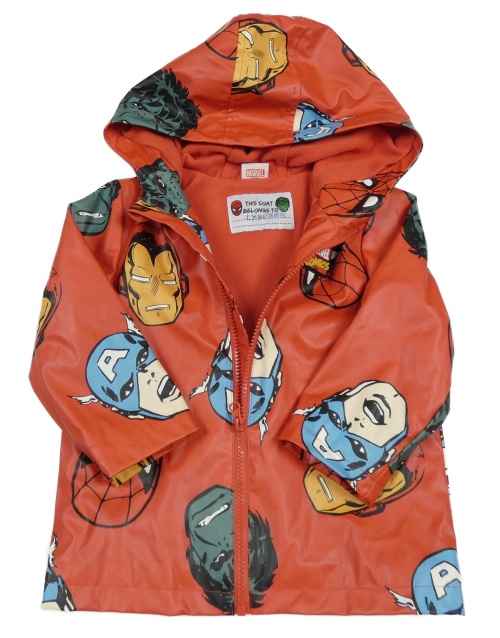 Červená nepromokavá jarní bunda s Marvel a kapucí Marvel