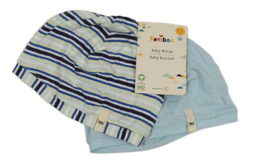 Nové - 2x - Světlemodrá + pruhovaná bavlněná čepice Kuniboo