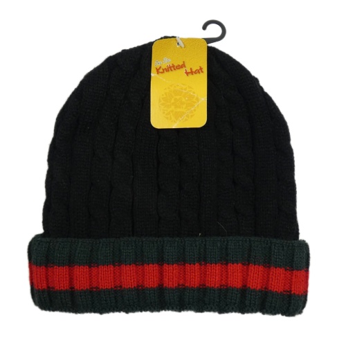 Nové - Černo-tmavozelená čepice s červeným pruhem