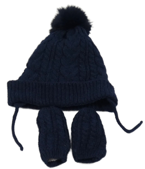 2set- tmavomodrá čepice s bambulí+ rukavice Primark