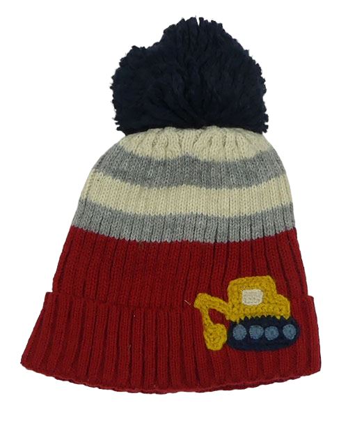 Červeno-béžovo-šedá zateplená čepice s bagrem a bambulí Next