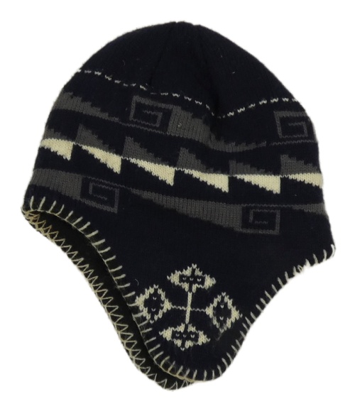 Tmavomodro-šedá vzorovaná pletená čepice