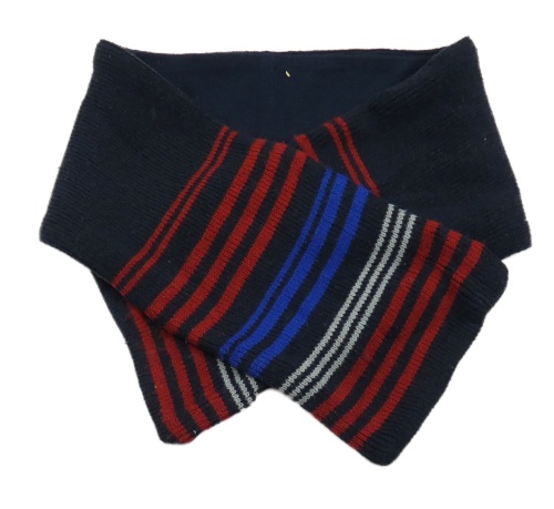Tmavomodrá pletená/fleecová šála s červenými a modrými pruhy